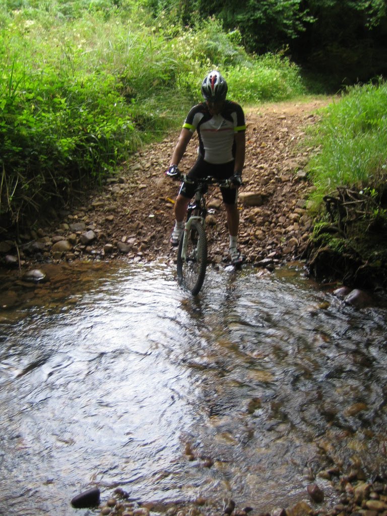 Son las 10,00 de la mañana y desde el punto de encuentro del Club en Los Canapés, partimos en dirección a La Luz, pasando por debajo de la variante de Avilés. Empezamos bien, ya nos enfrentamos por un sendero a una cuesta, de allí vamos camino de la ruta del agua por Xuncedo. Cuando estamos en ella, vemos como un  ciclista se encuentra parado mirando su  "flaca", digo su flaca porque pese a ser un camino rural, el que posteriormente sería nuestro compañero y guía de ruta, tiene una bicicleta de carretera o ciclo cross. Mi primer pensamiento fue, ¿que hace un tío por aquí con una bicicleta de este tipo?, pronto me despejaría las dudas al verlo pedalear, subir y bajar por empedrados como si de una auténtica mountain bike se tratara, y es que el ciclista con el que tropezamos es un miembro del "Club Gorfolí", auténticos y conocidos bikers de la zona. es más Verdes, que es como se llama nuestro compañero, enseguida nos demuestra su pleno conocimiento de la zona y nos enseña nuevos caminos, trialeras y riachuelos, en una zona que pese a ser habitual para nuestros paseos, tiene muchos senderos aún sin explorar por nosotros.